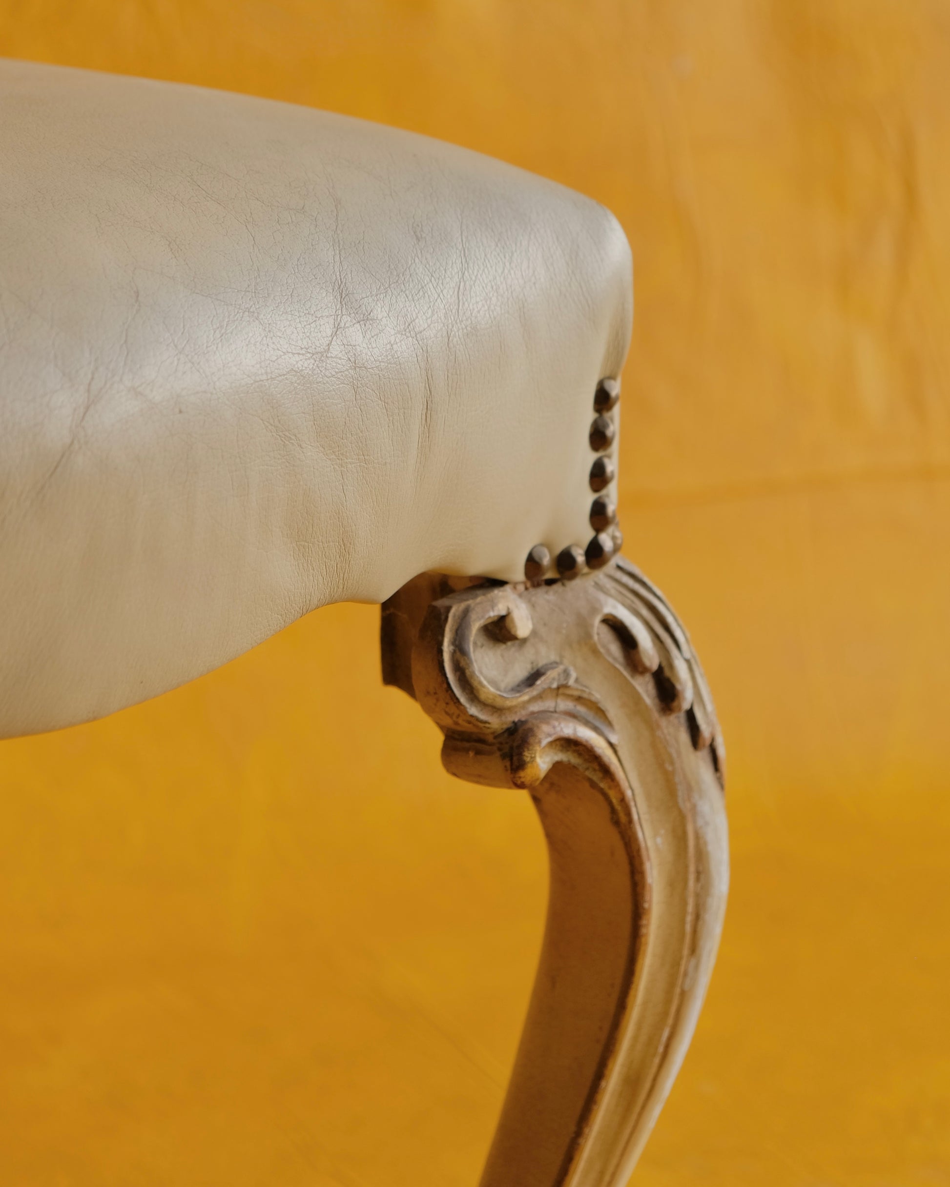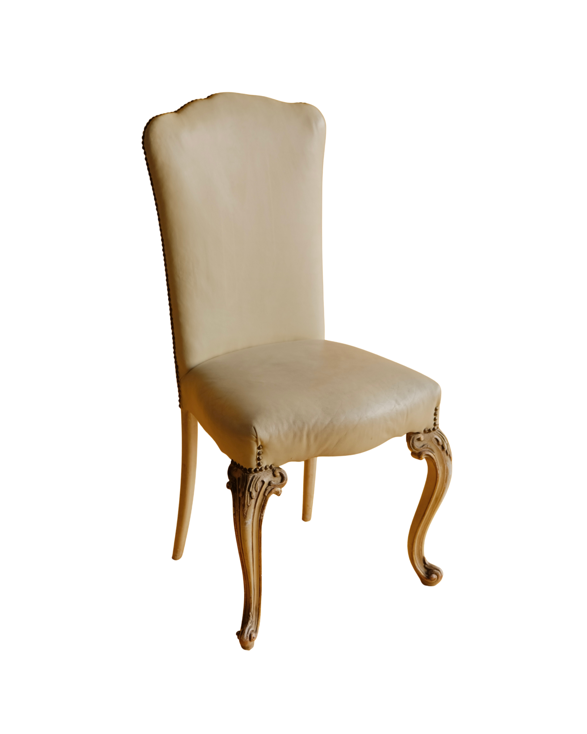 SET OF SIX LOUIS XV DINING CHAIRS w. ORIGINAL LEATHER UPHOLSTERY