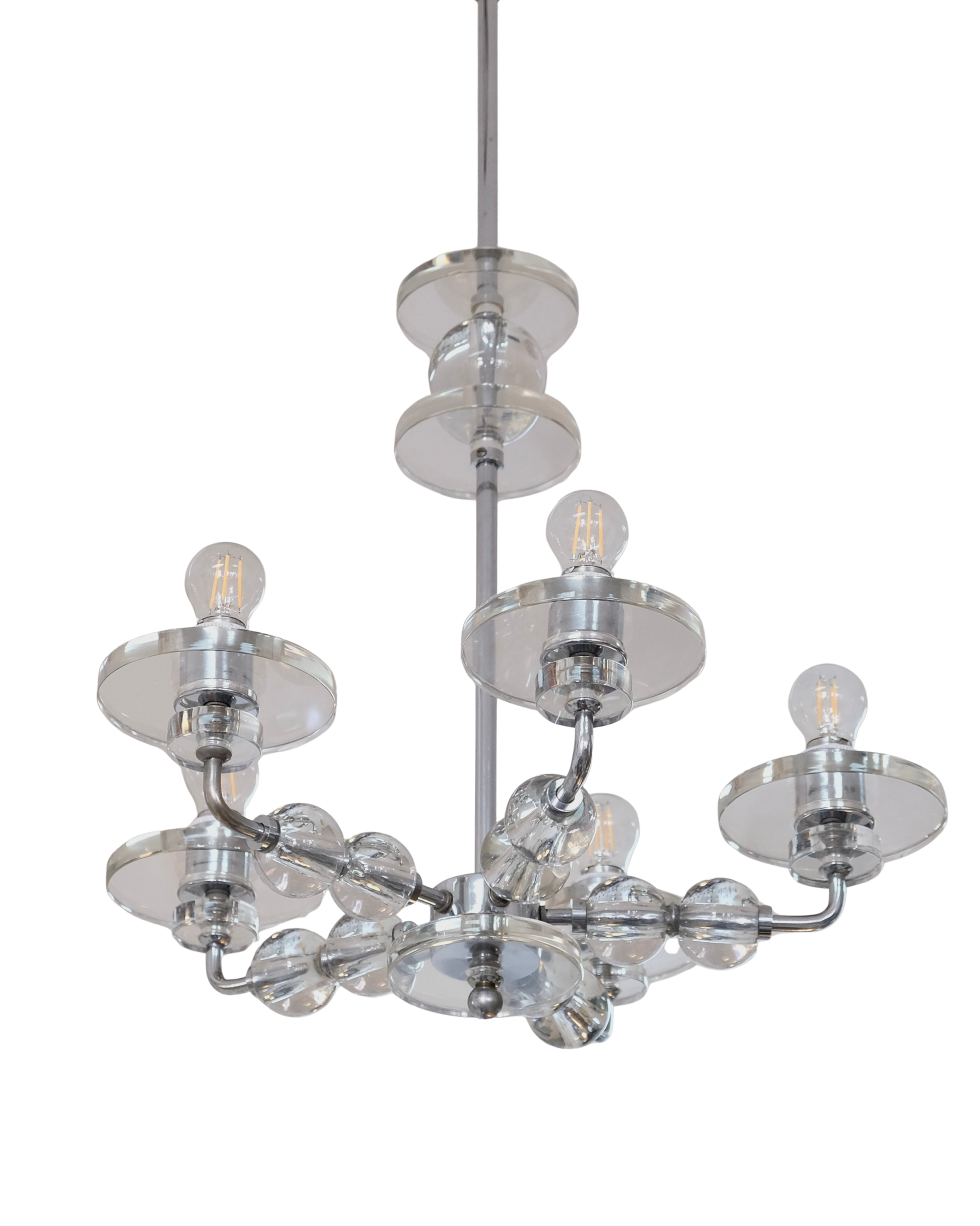 CHROME MODERNIST GLASS DISC PENDANT